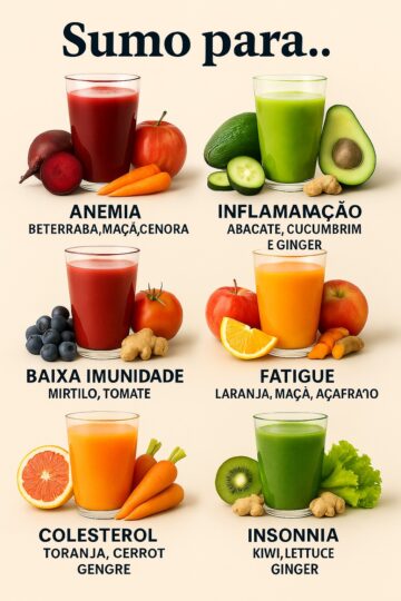 6 Receitas de Sucos Poderosos para Ajudar Naturalmente na Anemia, Inflamação, Fadiga, Baixa Imunidade, Colesterol Alto e Insônia